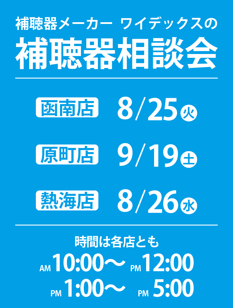 原町店は、9月19日と少し先になりますが、毎週月曜日に店長 丸山の補聴器相談会も開催中。