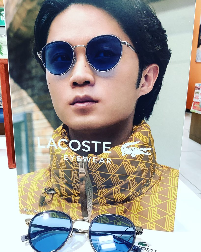 沼津原町店では磯村さん着用モデルのラコステサングラスを展示中です。