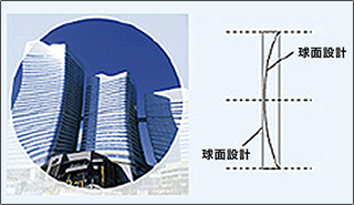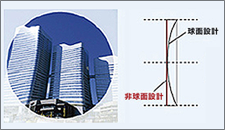 非球面レンズとは、レンズの外面カーブを非球面に設計しています。